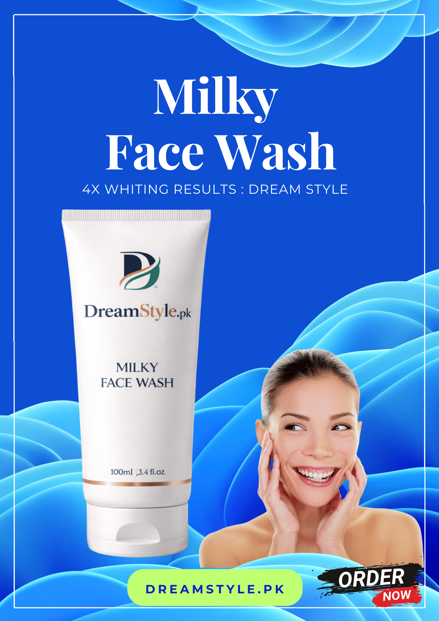 Glow Milky Face Wash is a creamy, gentle cleanser designed to remove dirt, impurities, and excess oil without stripping your skin’s natural moisture. Perfect for everyday use, this facewash helps your skin stay soft, smooth, and refreshed. Its milky formula provides a luxurious, soothing cleansing experience suitable for all skin types. Available at DreamStyle.pk, your trusted online skincare store in Pakistan.